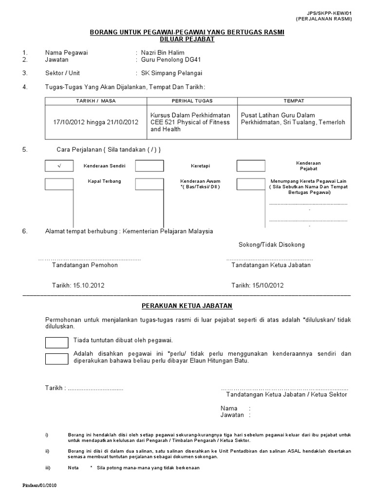 Borang Keluar Perjalanan Rasmi Claim Pdf